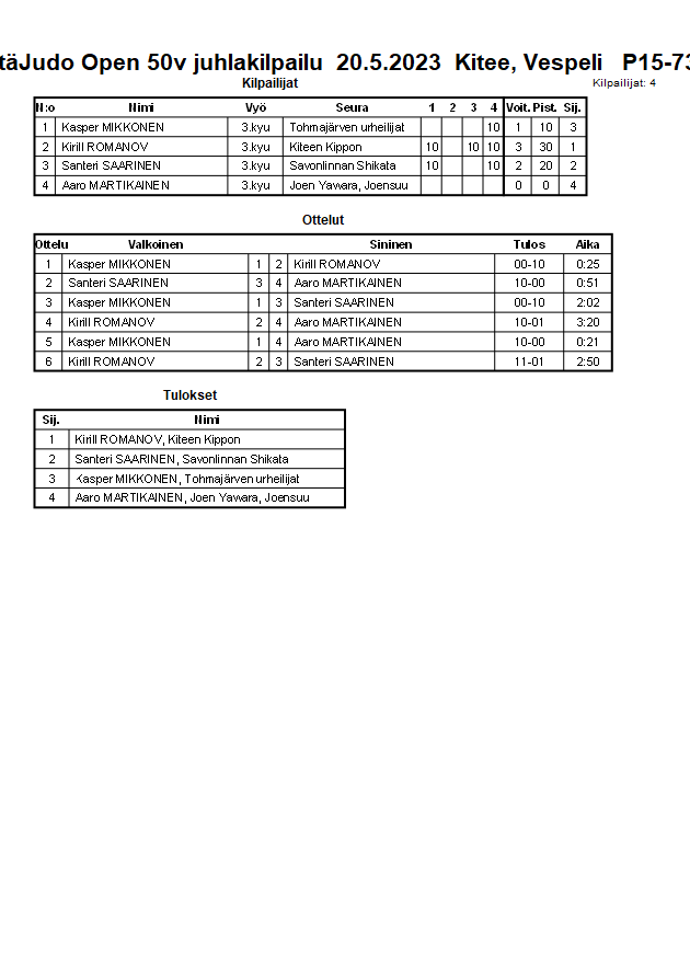 ItäJudo Open 50v juhlakilpailu 20.5.2023 Kitee, Vespeli