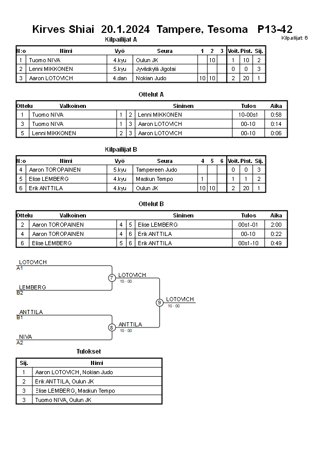 Kirves Shiai 20.1.2024 Tampere, Tesoma
