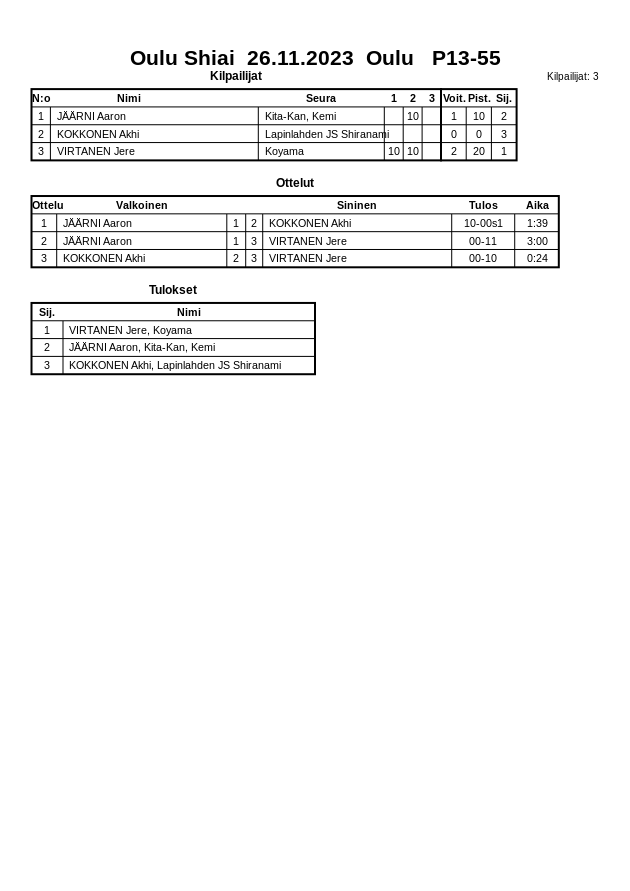 Oulu Shiai 26.11.2023 Oulu