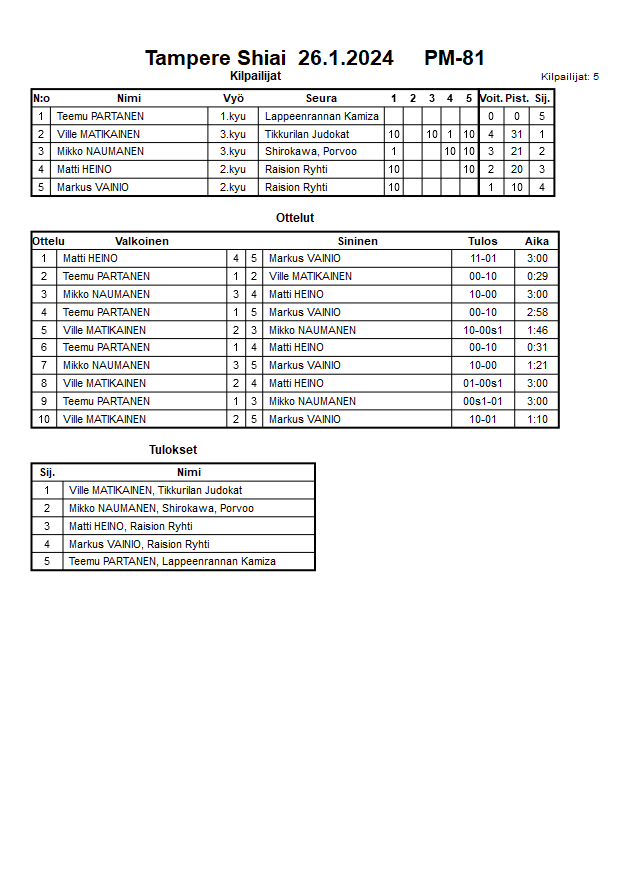 Tampere Shiai 26.1.2024