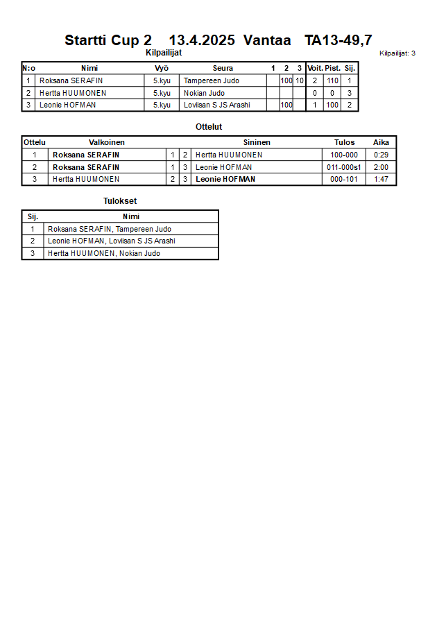 Startti Cup 2 13.4.2025 Vantaa
