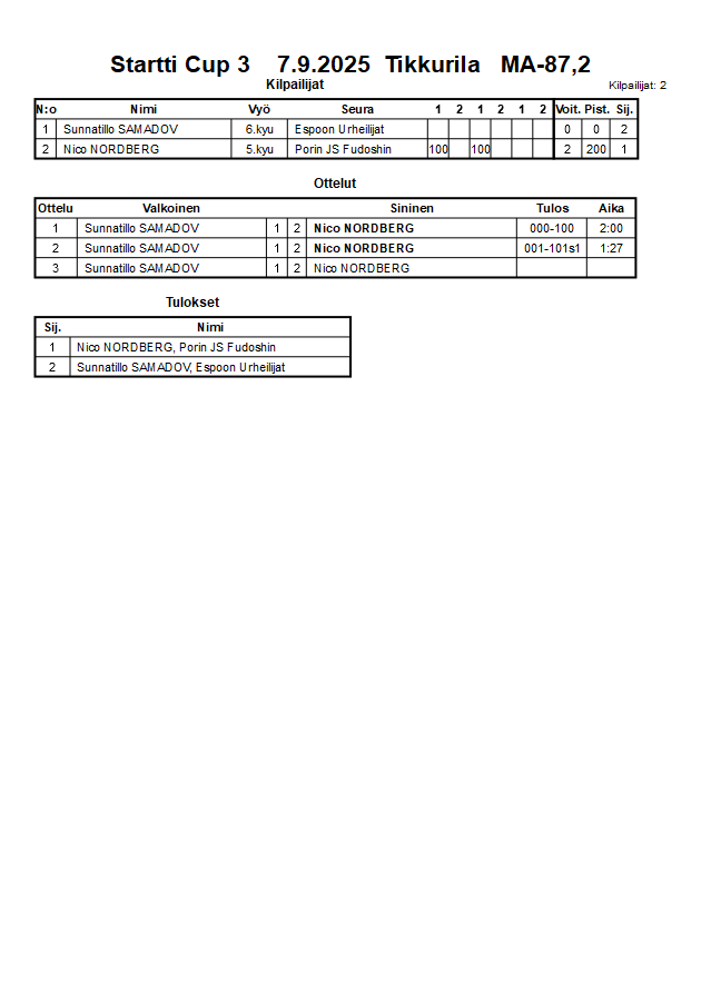 Startti Cup 3 7.9.2025 Tikkurila