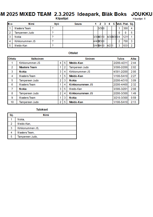SM 2025 MIXED TEAM 2.3.2025 Ideapark, Bläk Boks
