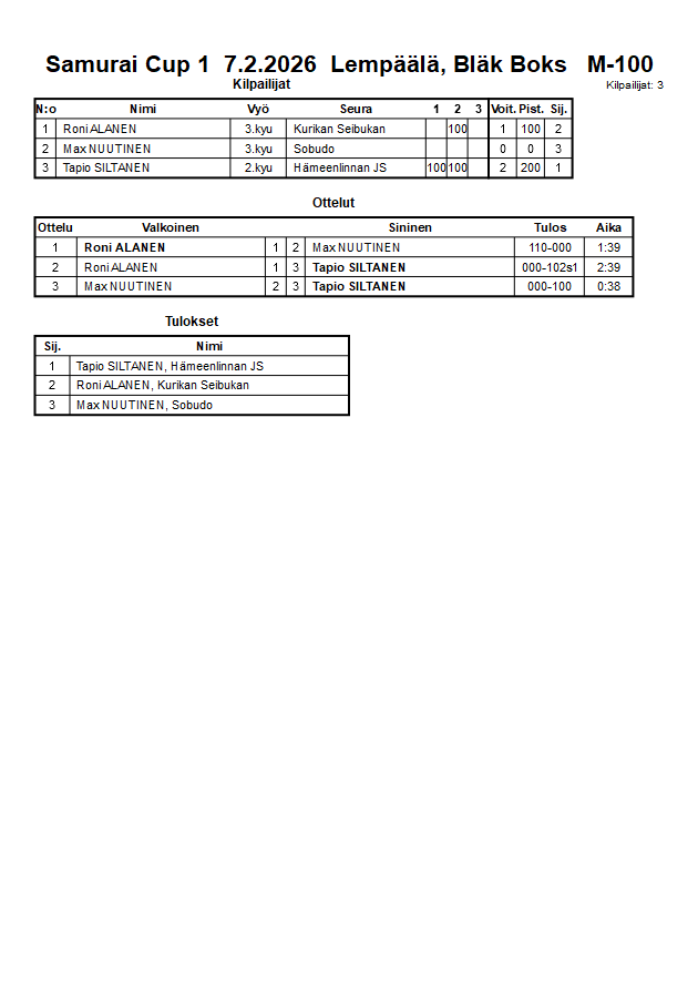 Samurai Cup 1 7.2.2026 Lempäälä, Bläk Boks