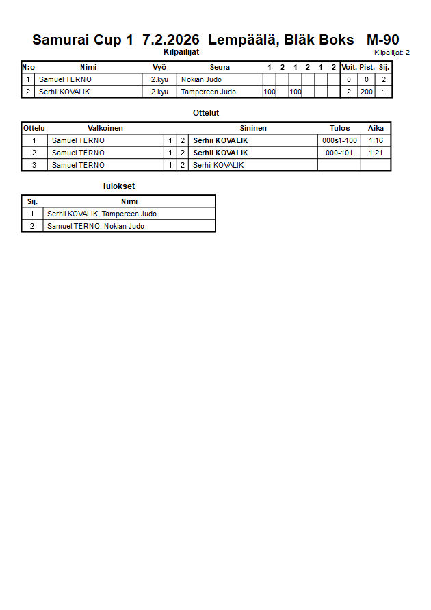 Samurai Cup 1 7.2.2026 Lempäälä, Bläk Boks