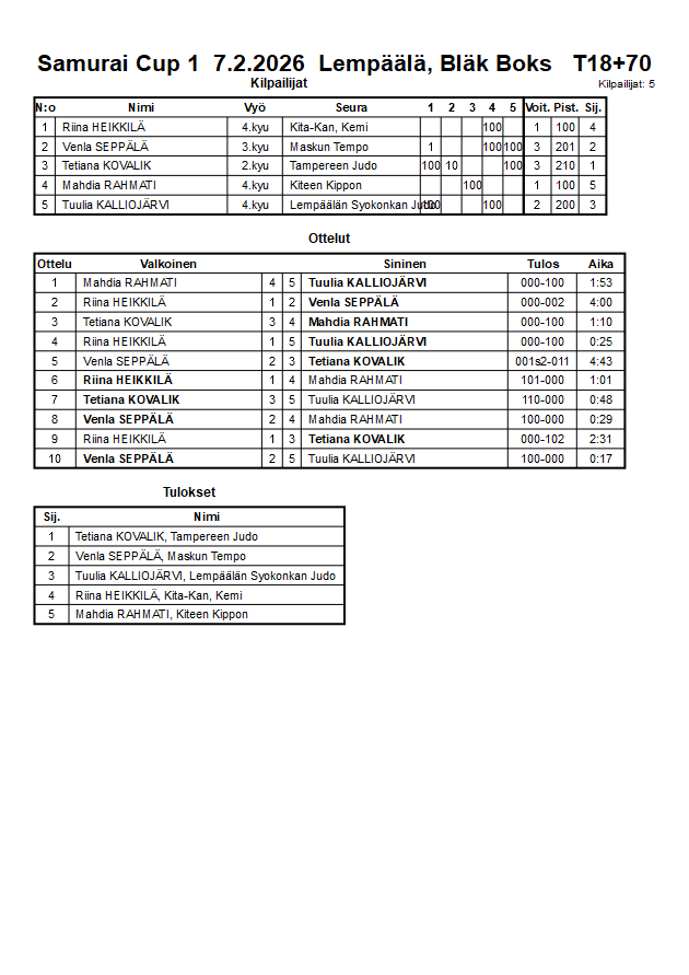 Samurai Cup 1 7.2.2026 Lempäälä, Bläk Boks
