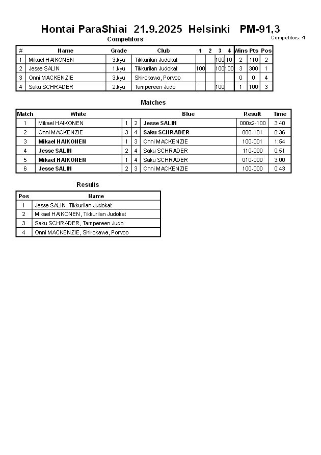 Hontai ParaShiai 21.9.2025 Helsinki