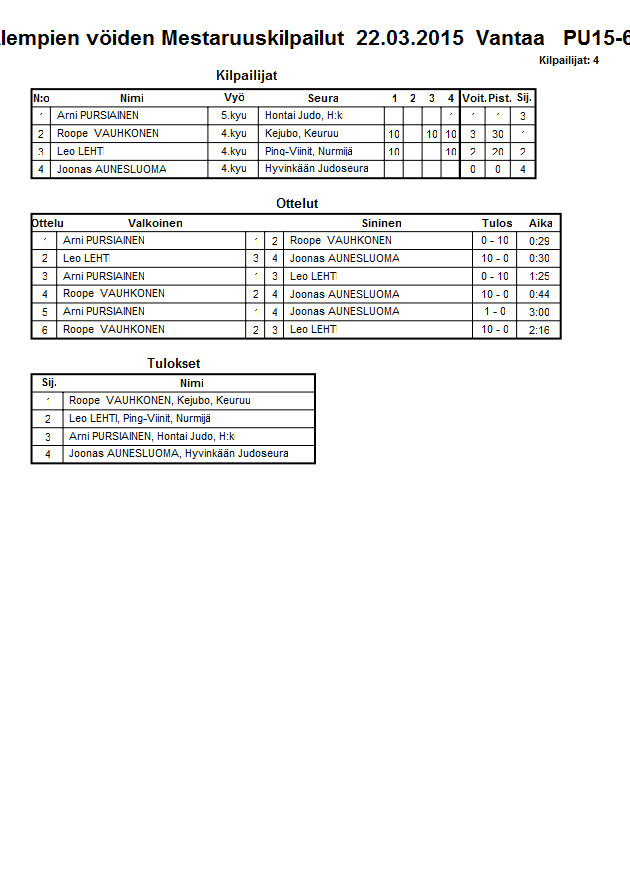Alempien vöiden Mestaruuskilpailut 22.03.2015 Vantaa