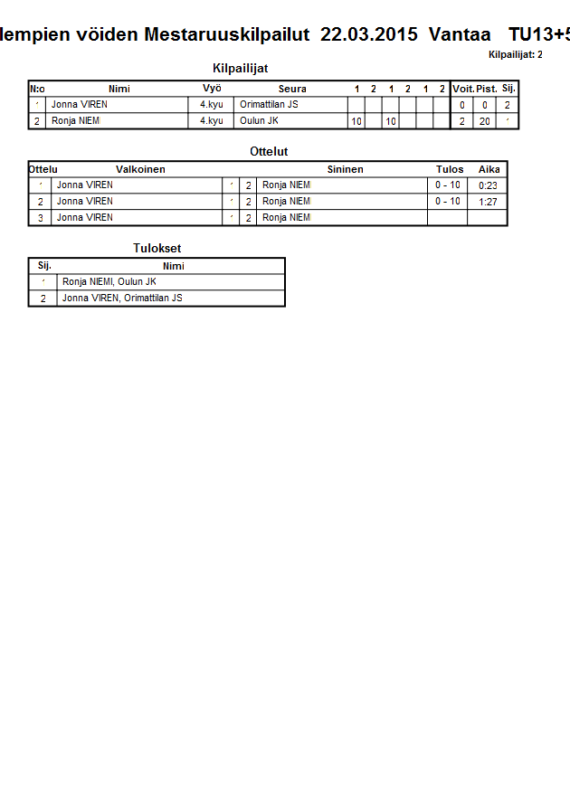 Alempien vöiden Mestaruuskilpailut 22.03.2015 Vantaa