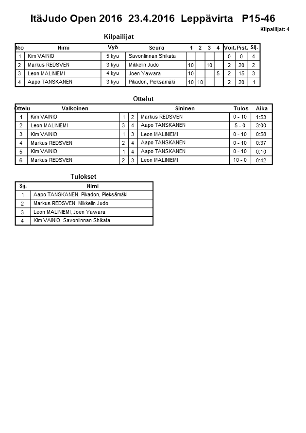 ItäJudo Open 2016 23.4.2016 Leppävirta