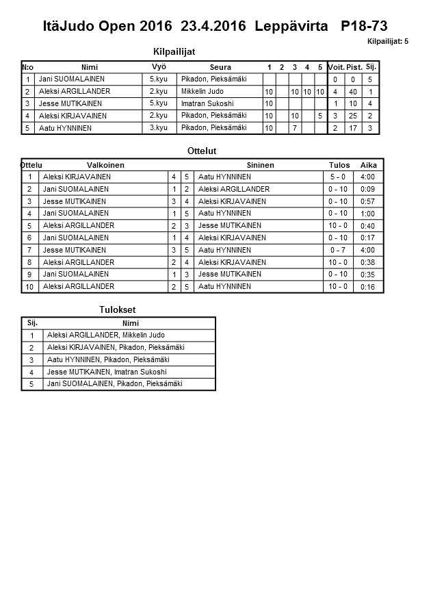 ItäJudo Open 2016 23.4.2016 Leppävirta