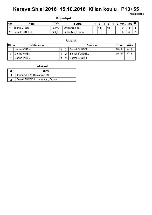 Kerava Shiai 2016 15.10.2016 Killan koulu