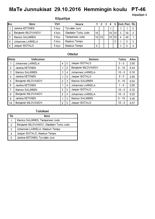 MaTe Junnukisat 29.10.2016 Hemmingin koulu
