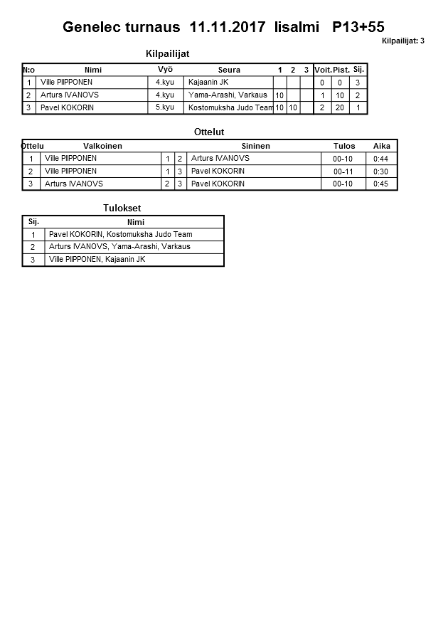 Genelec turnaus 11.11.2017 Iisalmi