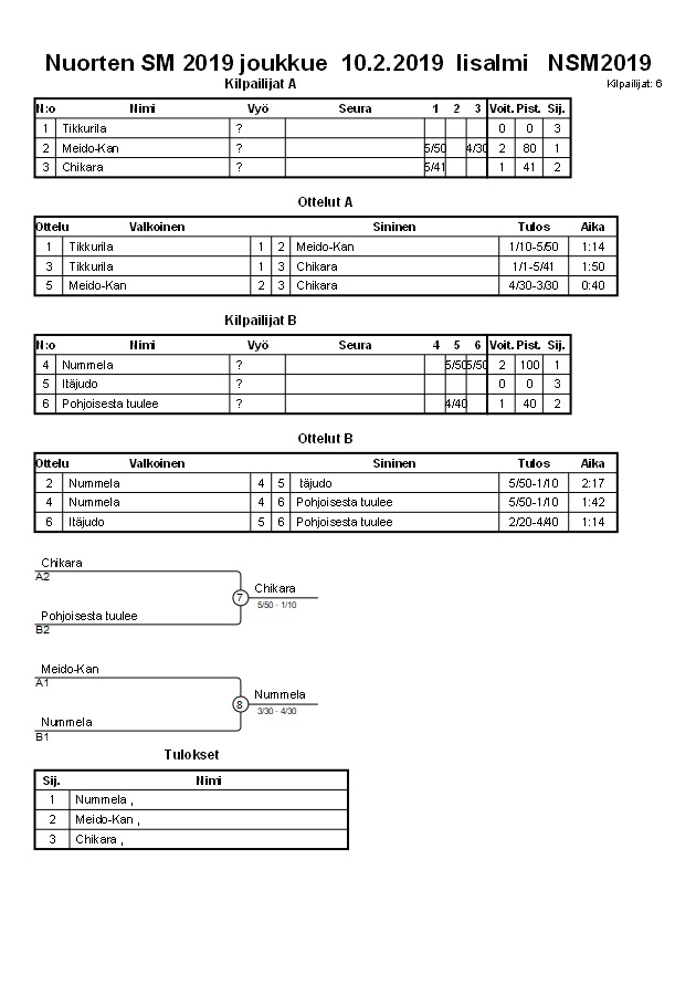 Ottelukohtaiset tulokset