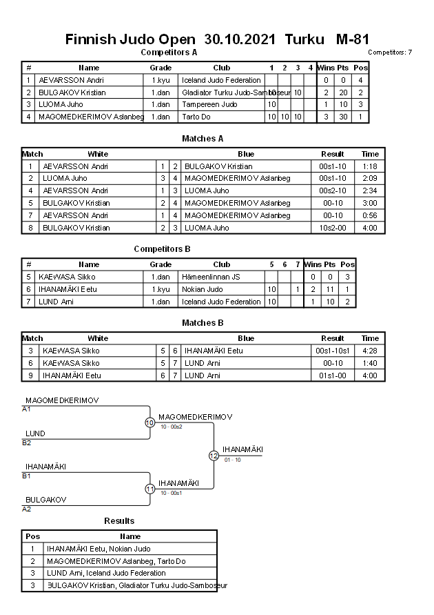 Finnish Judo Open 30.10.2021 Turku