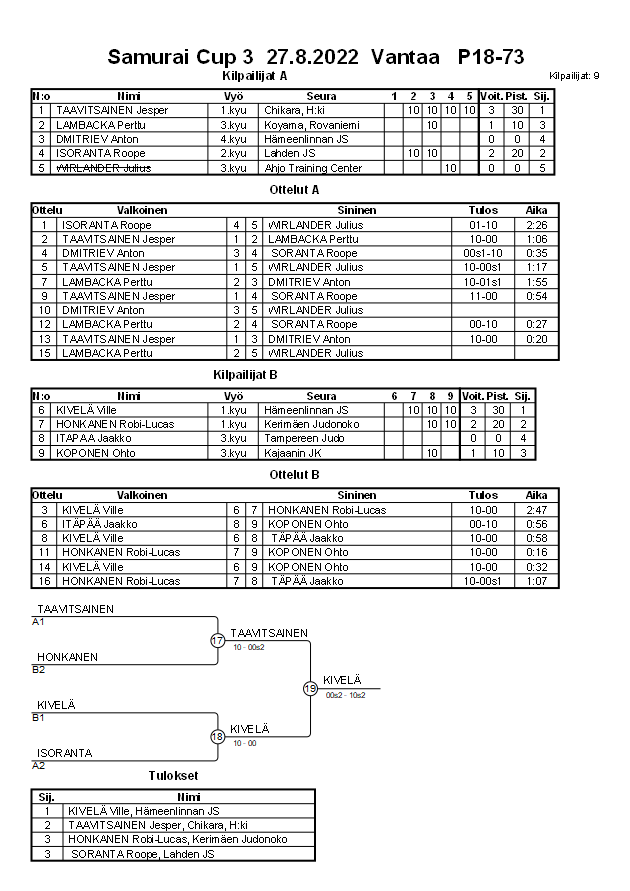 Samurai Cup 3 27.8.2022 Vantaa