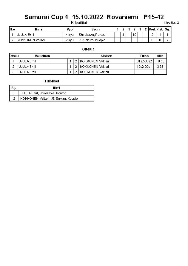 Samurai Cup 4 15.10.2022 Rovaniemi